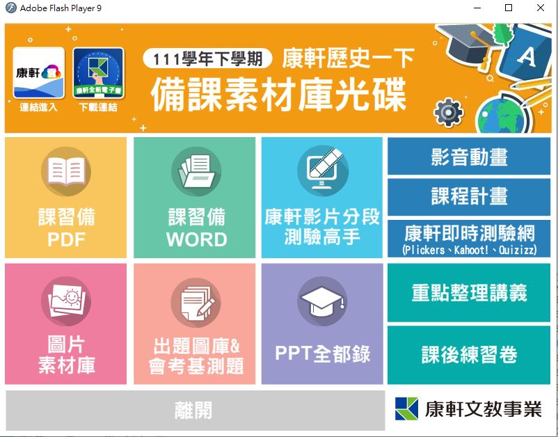 111學年下學期 國中 康軒版 歷史備課資料庫 1年級(含課本、卷類資源、備課用書、習作含解答、教學輔助資源)教學光碟
