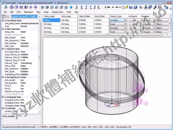 CamTrax64?標準凸輪類型包括圓柱凸輪,